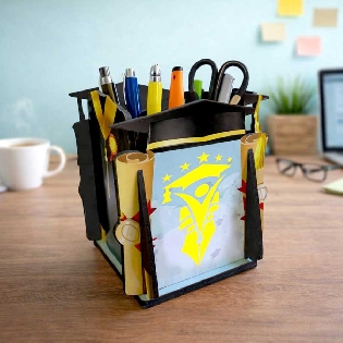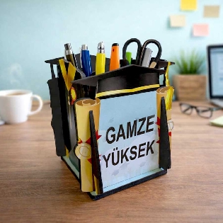 • Kişiye Özel Kalemliklerimiz: 10,5 x 12 x 7 cm boyutlarındaki, 3mm MDF malzemeden üretilmiş bu kalemlikler, Amerikan Bristol üzerine kişiselleştirilmiş baskılar ile şıklığı ve dayanıklılığı bir arada sunar. Lak kaplaması sayesinde solmaya karşı uzun ömürlüdür.