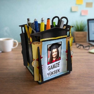 Kişiye Özel Ahşap Fotoğraflı Kalemlik - Mezuniyet Temalı