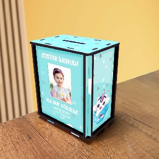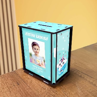 Kişiye Özel Ahşap Fotoğraflı Kumbara - Çocuklar İçin